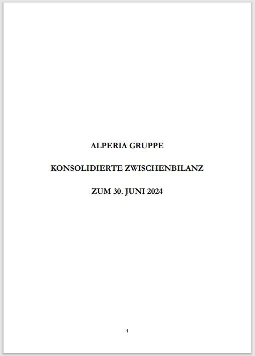 Document Type Bilancio finanziario Publication Date Mo., 23.09.2024 - 14:02 Accounting Year 2024 Accounting Period 1H Attachment Alperia - Konsoldierter Halbjahresabschluss zum 30. Juni 2024.pdf Order/contract date Mo., 23.09.2024 - 14:02
